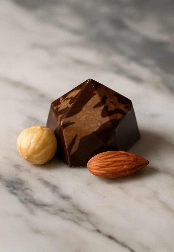Este bombón es una joyita: mezcla la untuosidad de la avellana con la textura crujiente de la almendra.