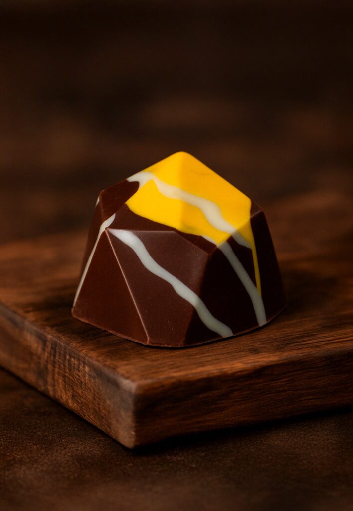 Inspirado en los sabores de las costas del Pacífico mexicano, este bombón une la cremosidad del coco con el jugoso mango maduro.